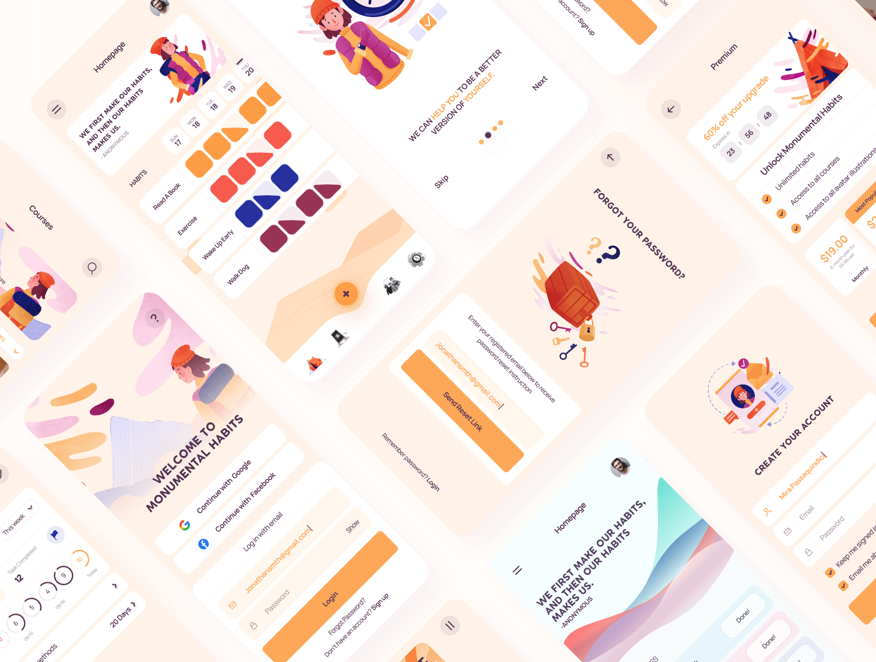 This Monumental habit app is a UI kit designed to help designers get started with their client projects faster and easier.