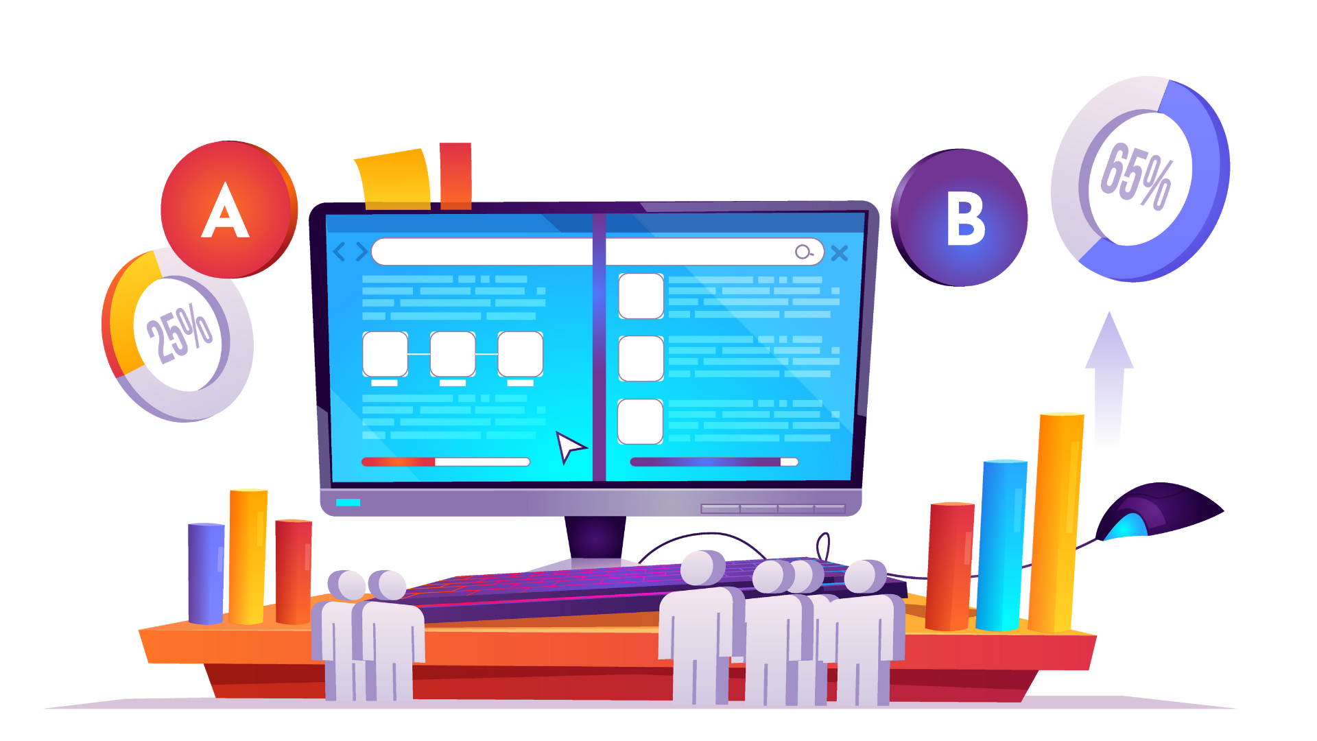 To conduct an A/B test, start by identifying the element or elements you want to test. This might include the headline, the call-to-action (CTA) copy, images, or other design elements.