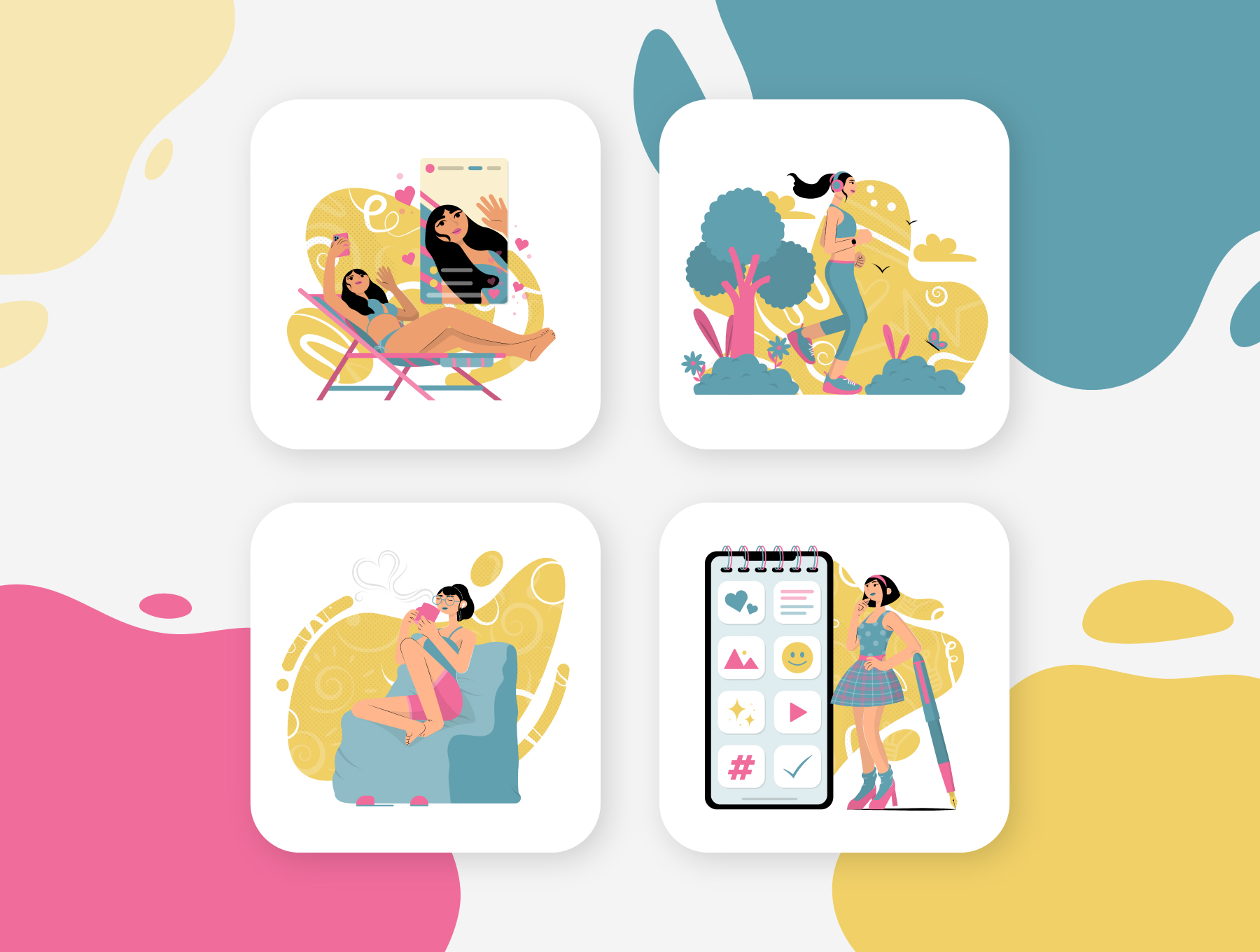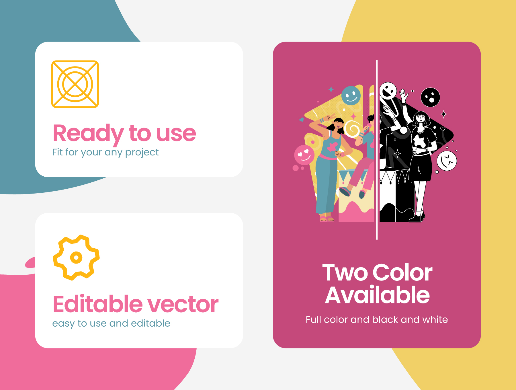 This collection of ready-to-use, editable vector illustrations is perfect for any website or app. It's available in both black and white, so you can easily optimize for any platform. Plus, they're friendly, fun, and perfect for any influencer's content. Get creative and stylish with this great illustration pack!