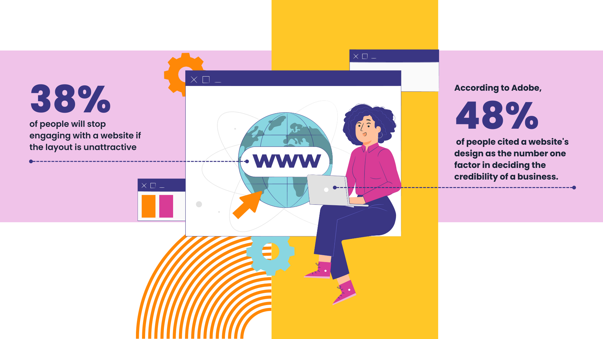 Research has shown that 38% of people will stop engaging with a website if the layout is unattractive. Furthermore, according to Adobe, 48% of people cited a website's design as the number one factor in deciding the credibility of a business.