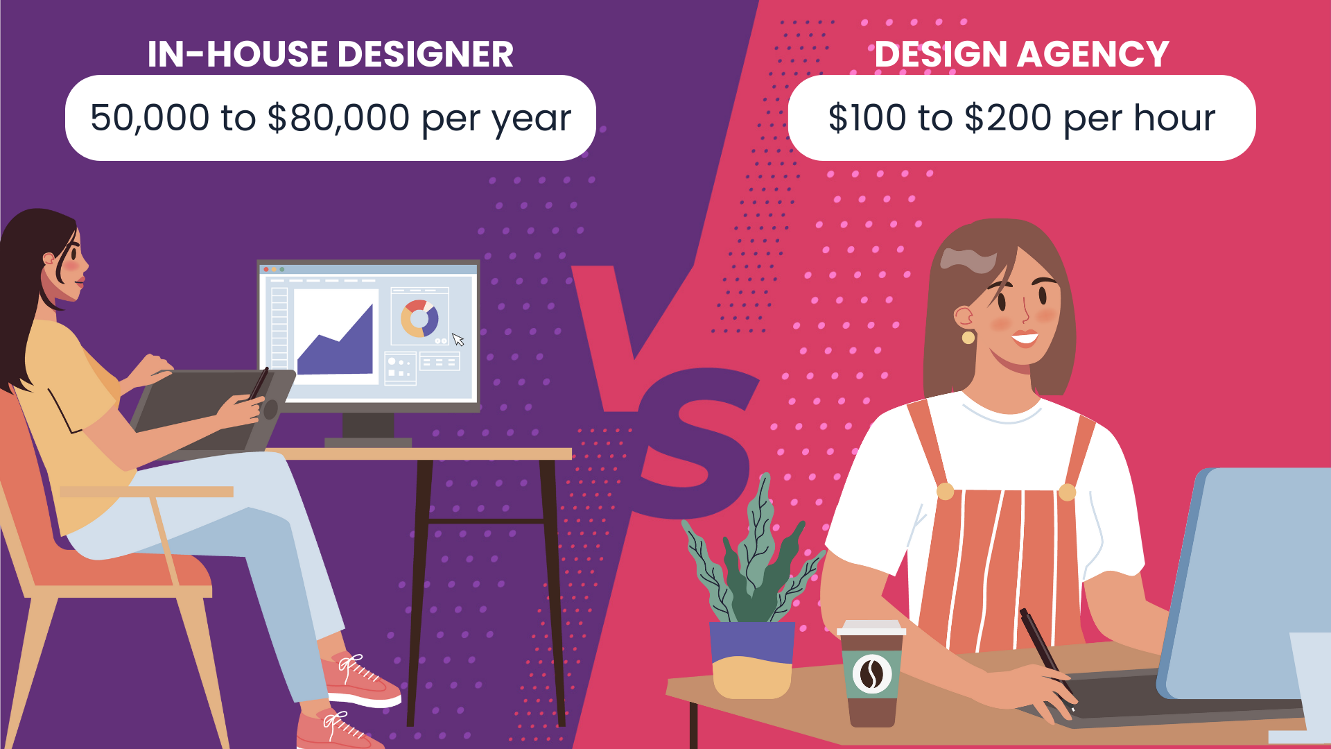 Consider this: hiring a full-time, experienced in-house designer can cost anywhere from $50,000 to $80,000 per year, not including benefits and software costs. On the other hand, a design agency might charge anywhere from $100 to $200 per hour.